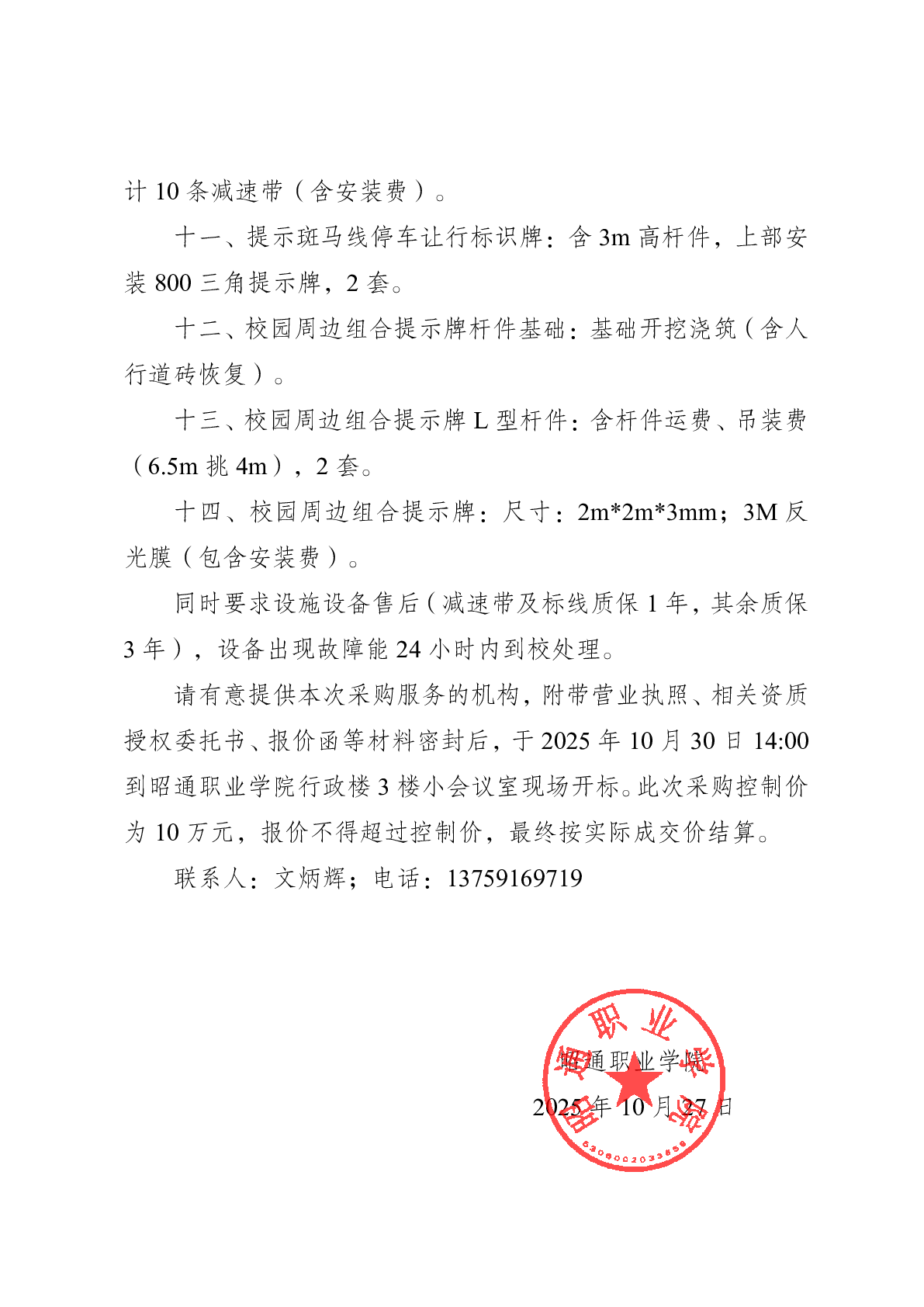 昭通职业学院 关于“三警一带”设施设备询价的公告