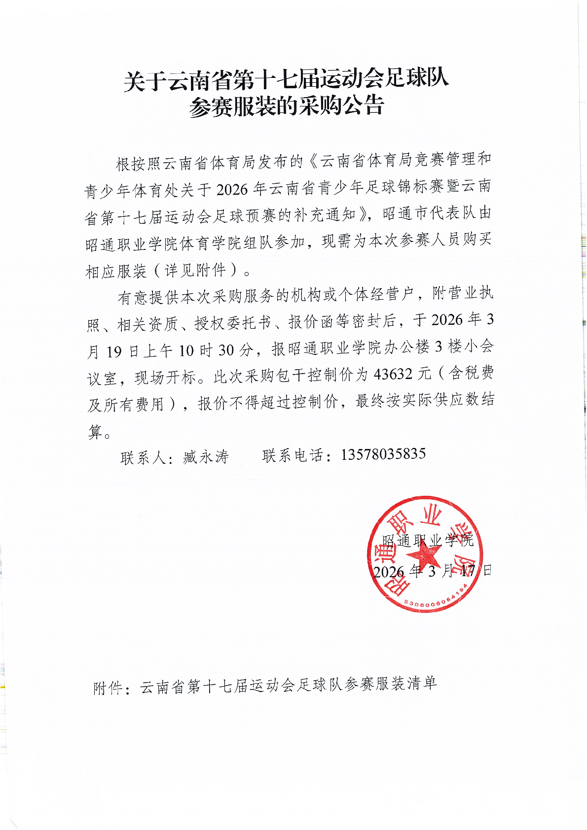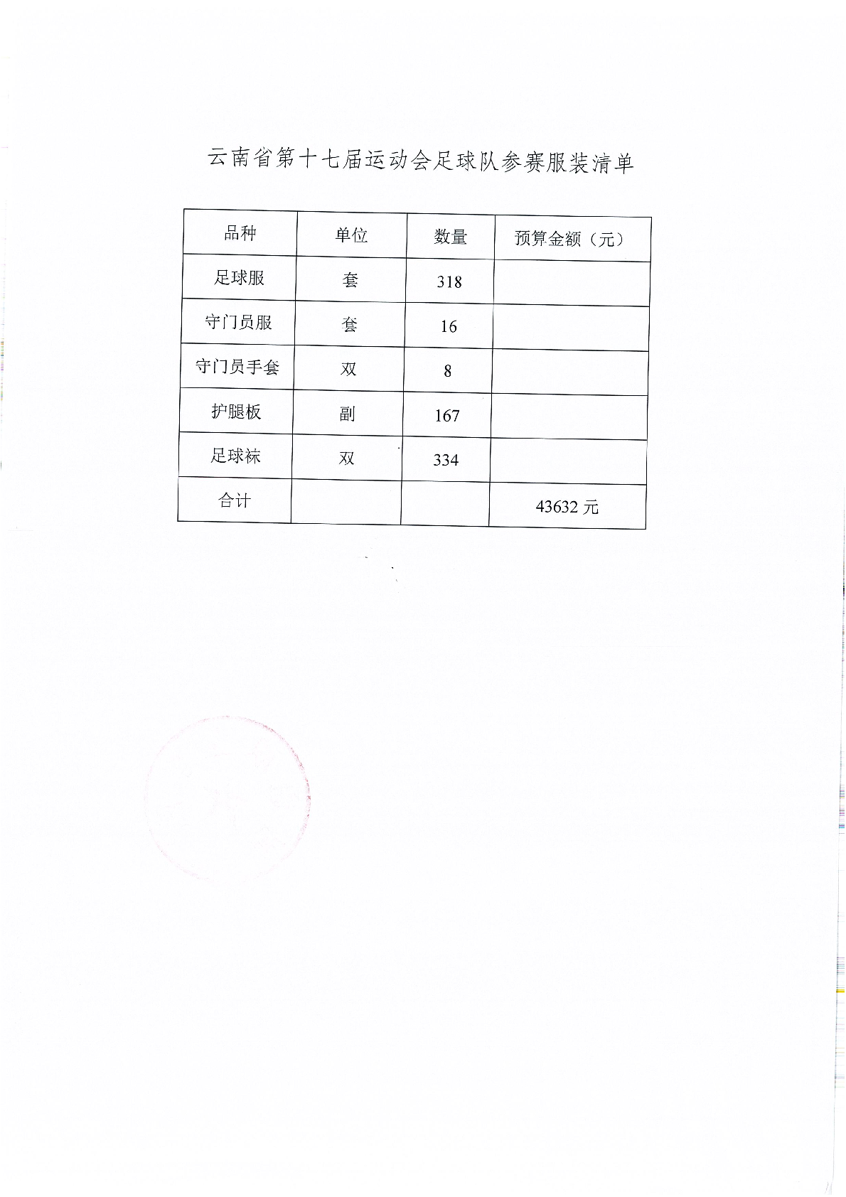 关于云南省第十七届运动会足球队参赛服装的采购公告